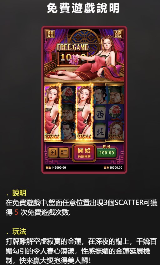 觸發方式 :出現3個以上BONUS(Scatter)符號,即獲12次免費旋轉,多個Scatter可加旋轉次數。